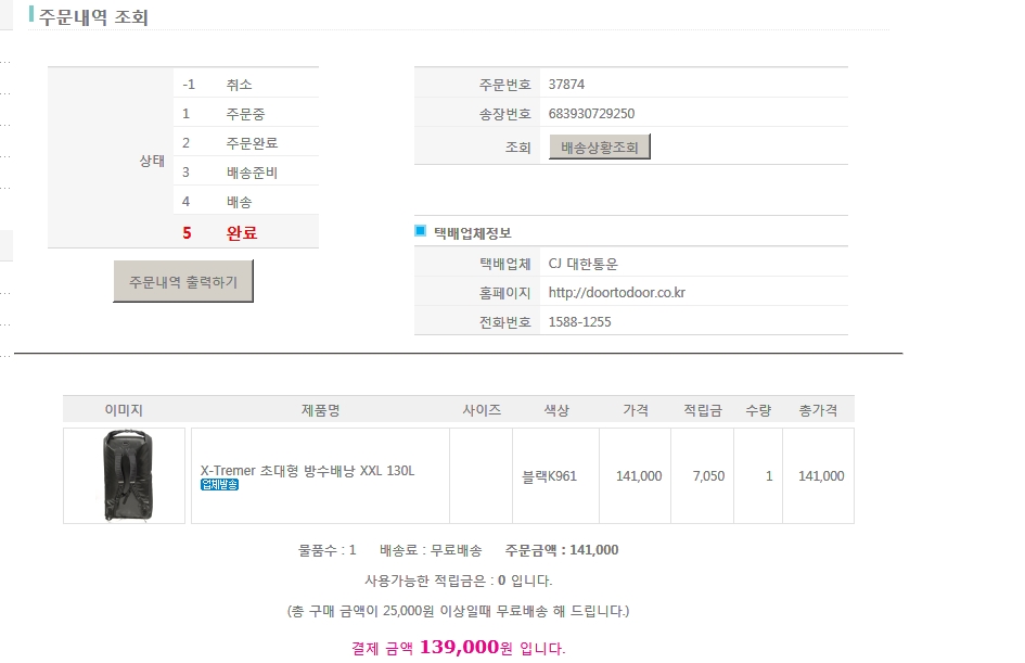 물건받은 당일 5000원 계좌번호로 입금했고 받으신후 카드취소부탁드립니다. (운송장번호 6839-5193-5912) |