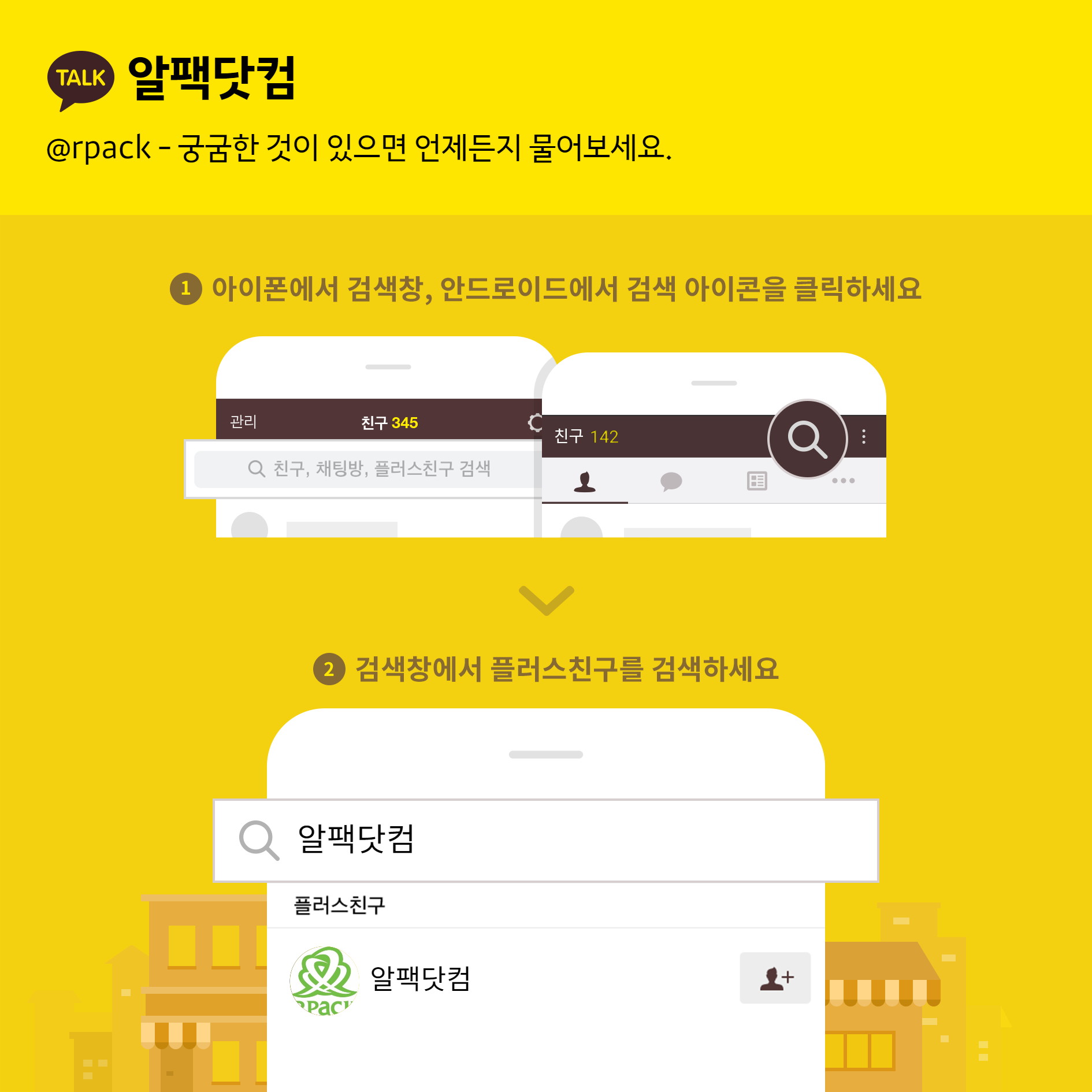 카카오톡 검색창에서 블루스친구 '알팩닷컴' 혹은 'rpack'로 검색을 하시고 친구 추가를 해주시면 문의 하실수 있습니다.