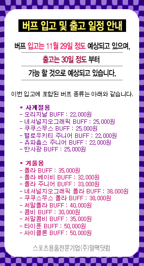| 버프 11월 29일 입고 예정 안내. | |