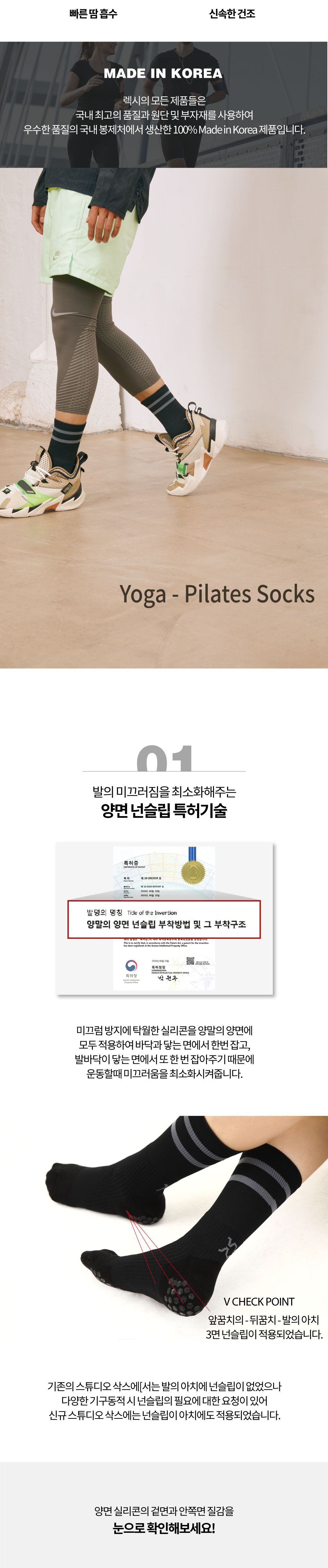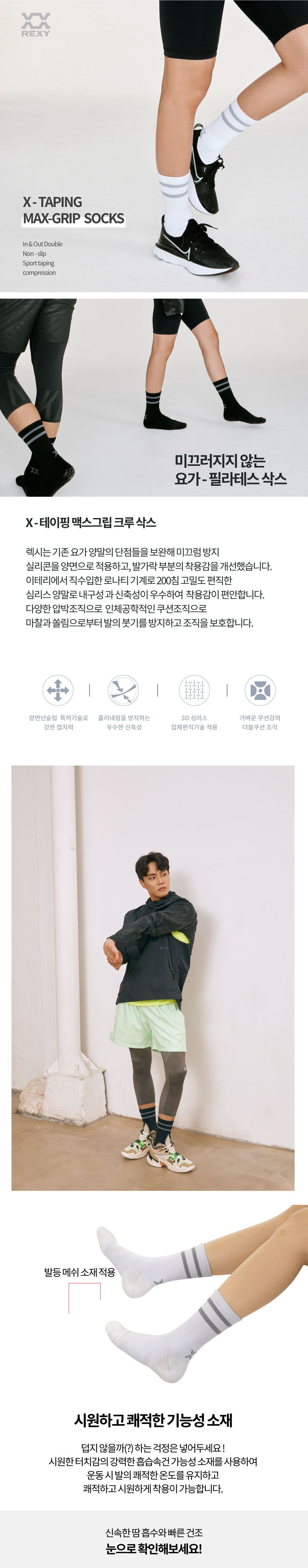 종류 렉시 X-테이핑 맥스그립 크루 양말