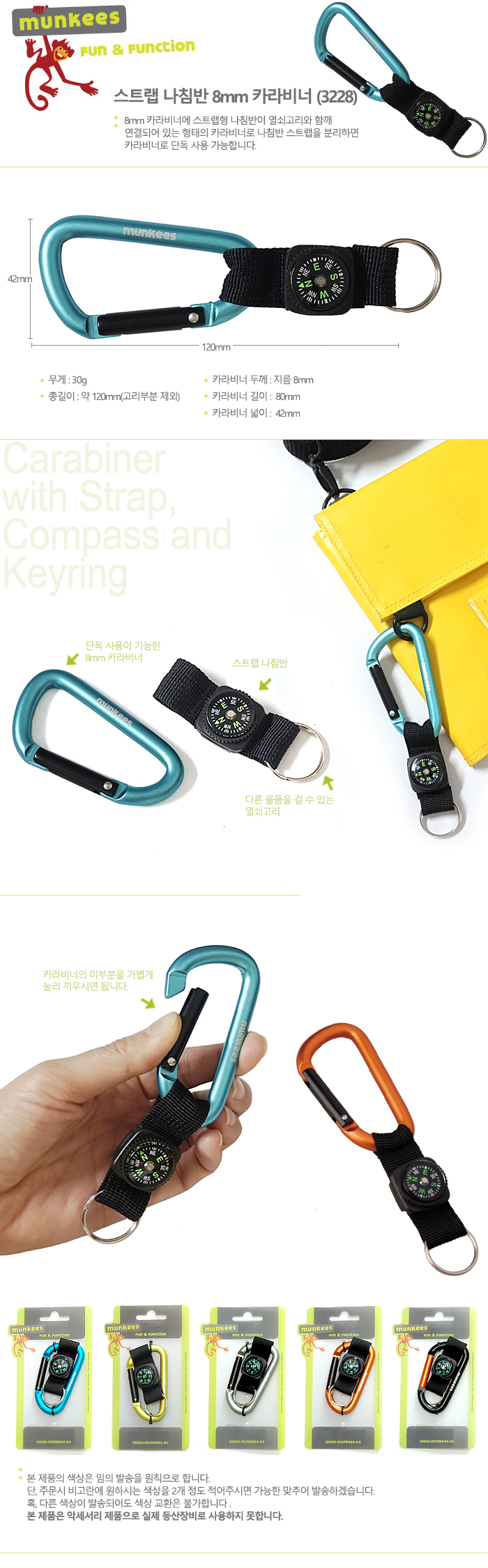 품명 및 모델명 스트랩 나침반 8mm 카라비너 (3228)