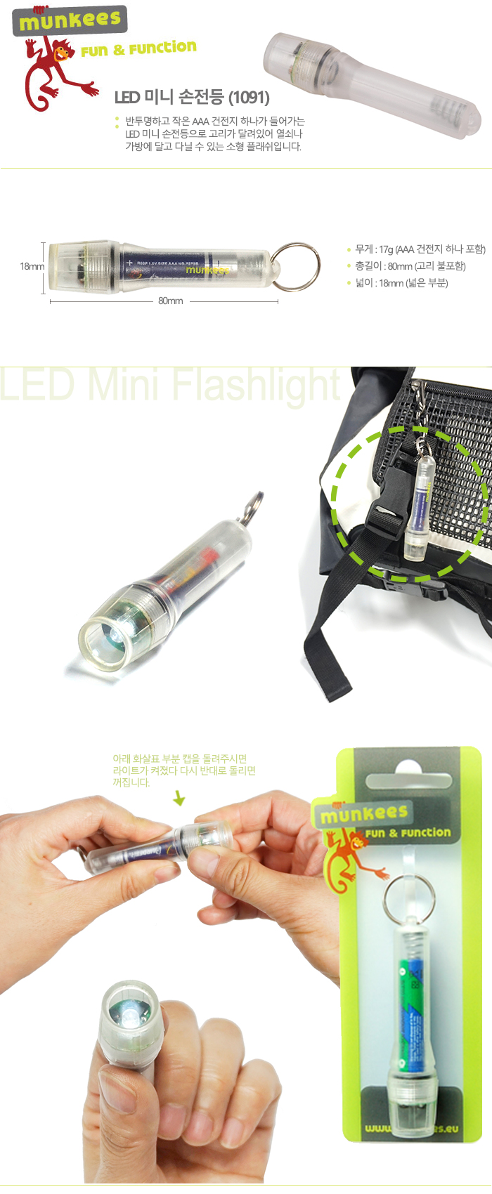 잡화/액세서리 > 몽키스 > 라이트 > 몽키스 LED 미니 손전등 (1091)