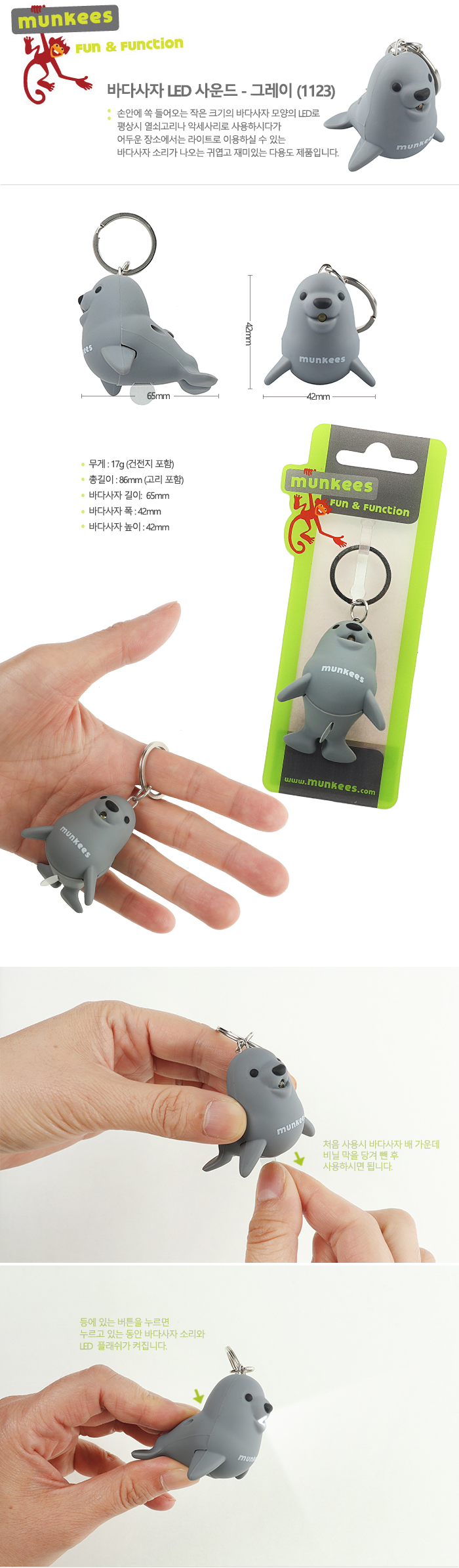잡화/액세서리 > 몽키스 > 라이트 > 몽키스 바다사자 LED 사운드 - 그레이 (1123)
