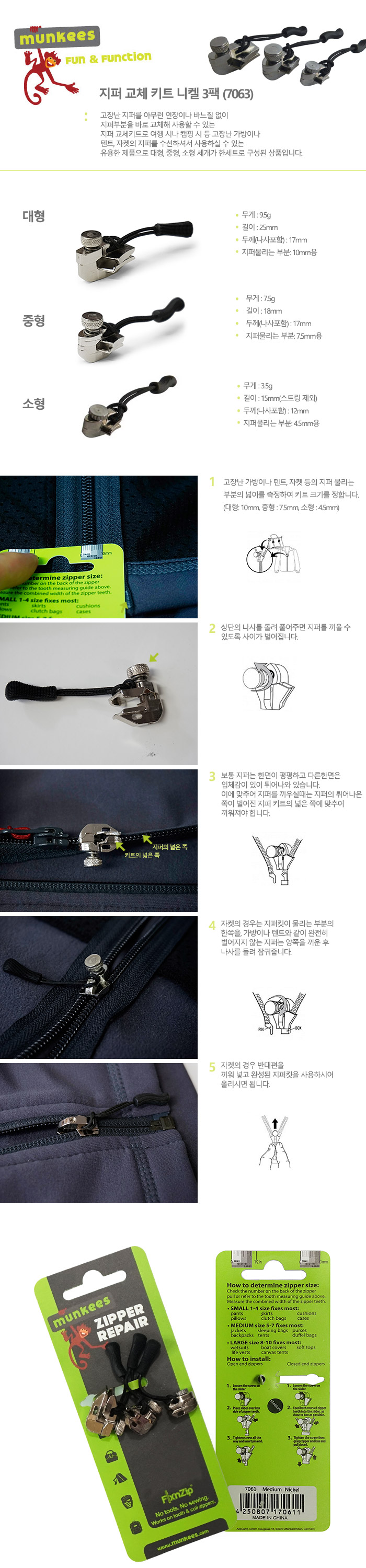 몽키스 지퍼 교체 키트 니켈 3팩 (7063)