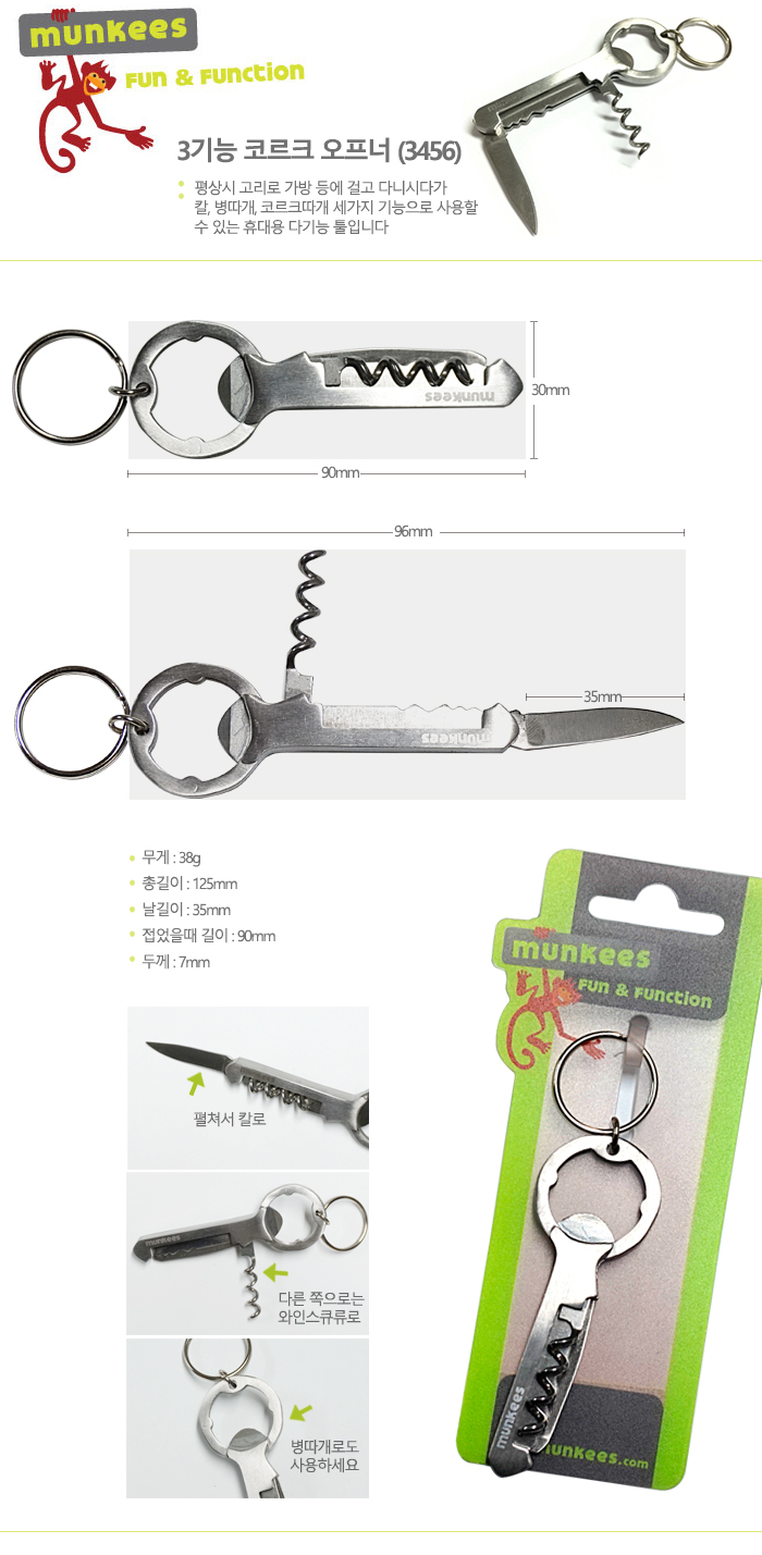 잡화/액세서리 > 몽키스 > 나이프/툴 > 몽키스 3기능 코르크 오프너 (3456)