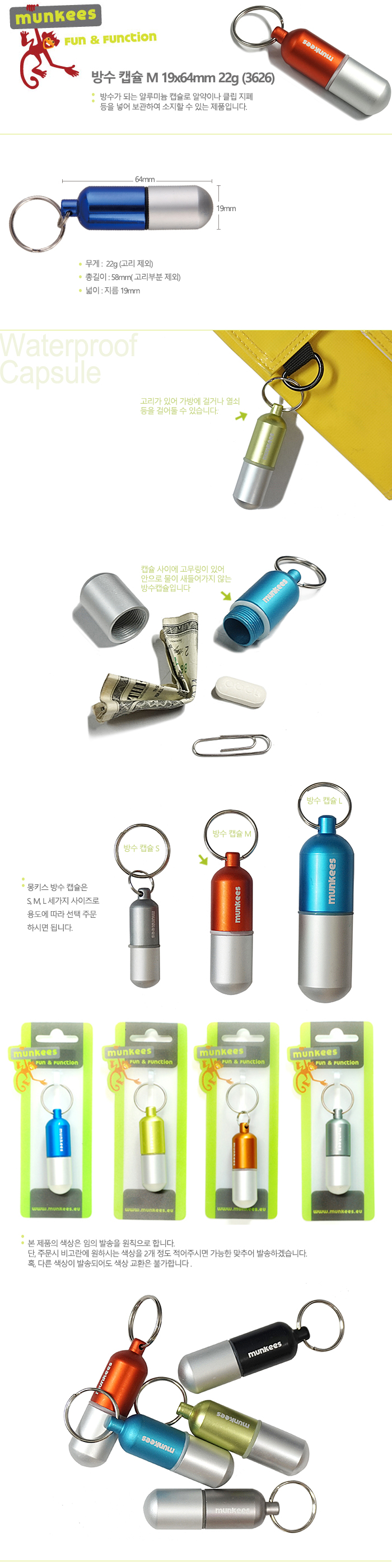 잡화/액세서리 > 몽키스 > 캡슐/휘슬 > 몽키스 방수 캡슐 M 19x64mm 22g (3626)