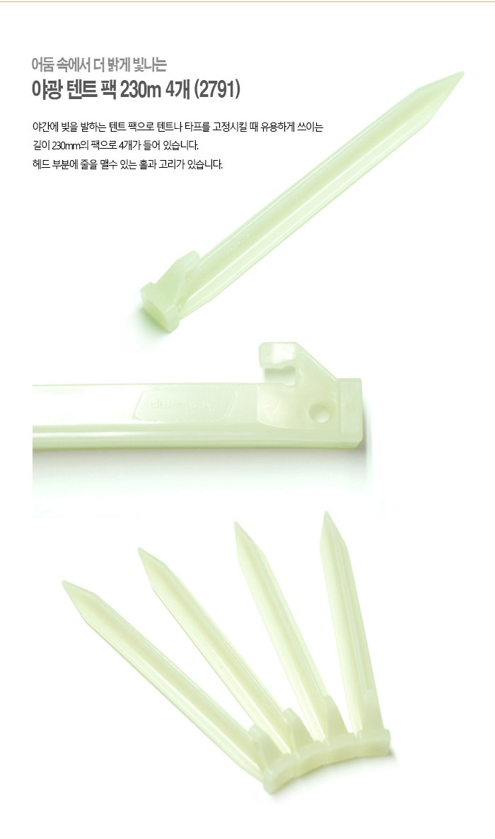Glow In the Dark Tent Peg 4pcs/pack (2791)  길이 : 230mm, 무게: 25g