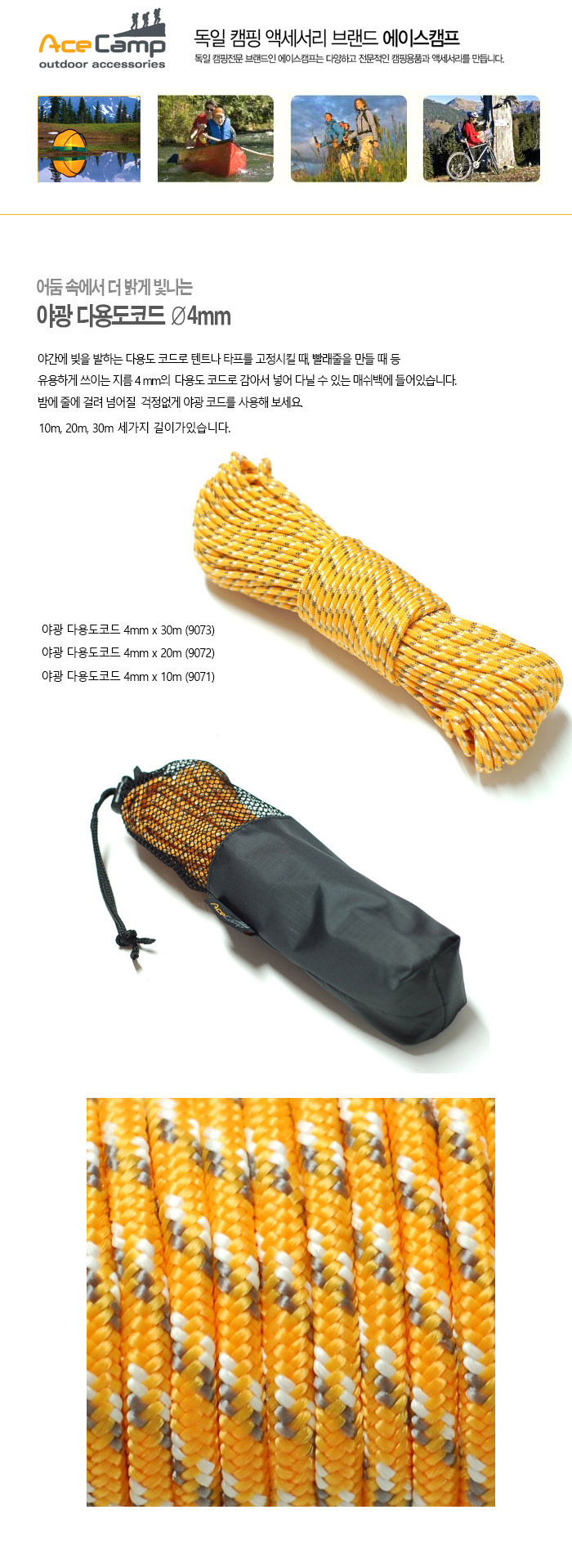 캠핑/여행 > 에이스캠프 > 야광 텐트용품 > 에이스캠프 야광 다용도코드 4mm x 10m (9071)