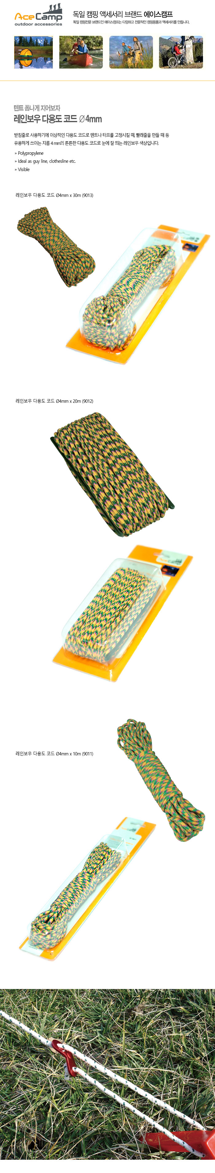 캠핑/여행 > 에이스캠프 > 텐트용품 > 에이스캠프 레인보우 다용도 코드 Ø4mm x 10m (9011)