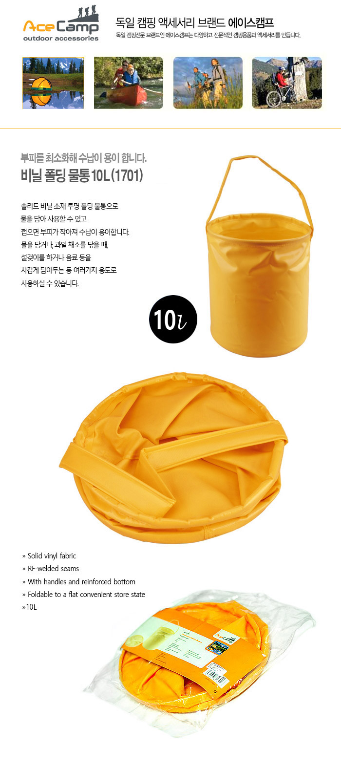 캠핑/여행 > 에이스캠프 > 캠핑소품 > 에이스캠프 비닐 폴딩 물통 10L (1701)