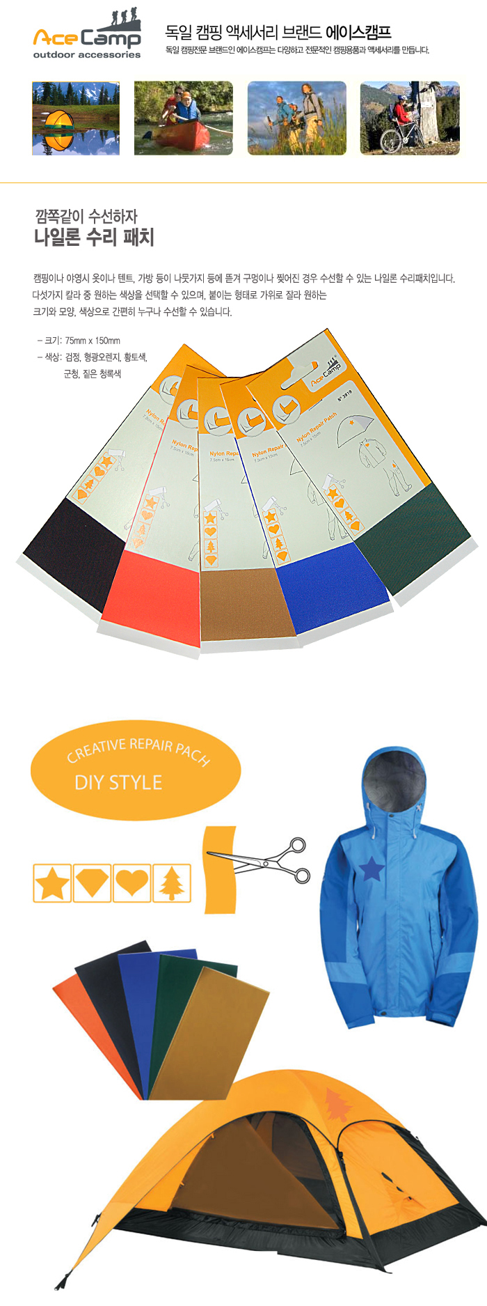 캠핑/여행 > 에이스캠프 > 캠핑소품 > 에이스캠프 나일론 수리 패치-형광 오렌지 (3919or)