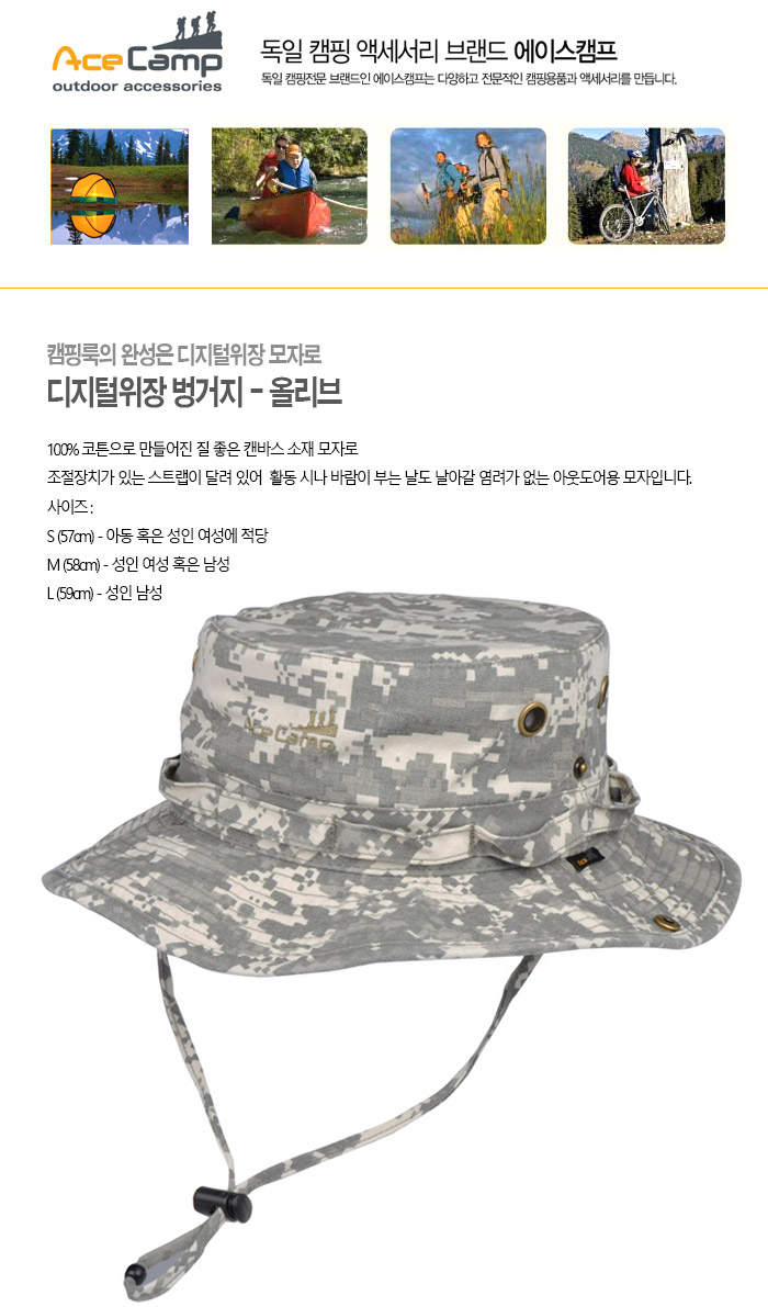 캠핑/여행 > 에이스캠프 > 캠핑소품 > 에이스캠프 디지털위장 벙거지 - 올리브 S (6207S)