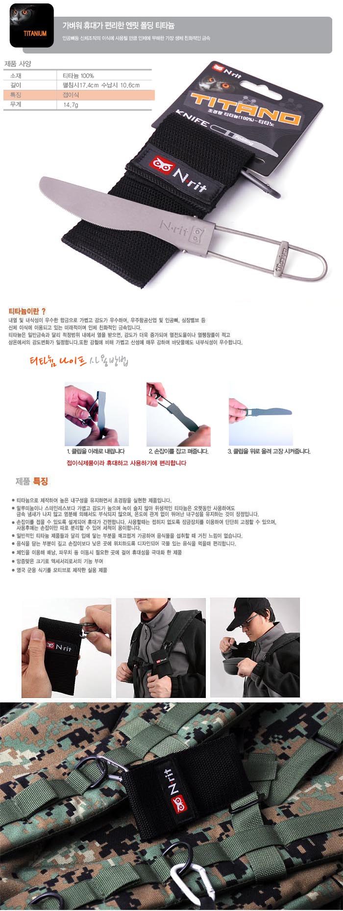 캠핑/여행 > 취사/용기 > 티타늄수저 > 폴딩 나이프 (N-rit FOLDING KNIFE)