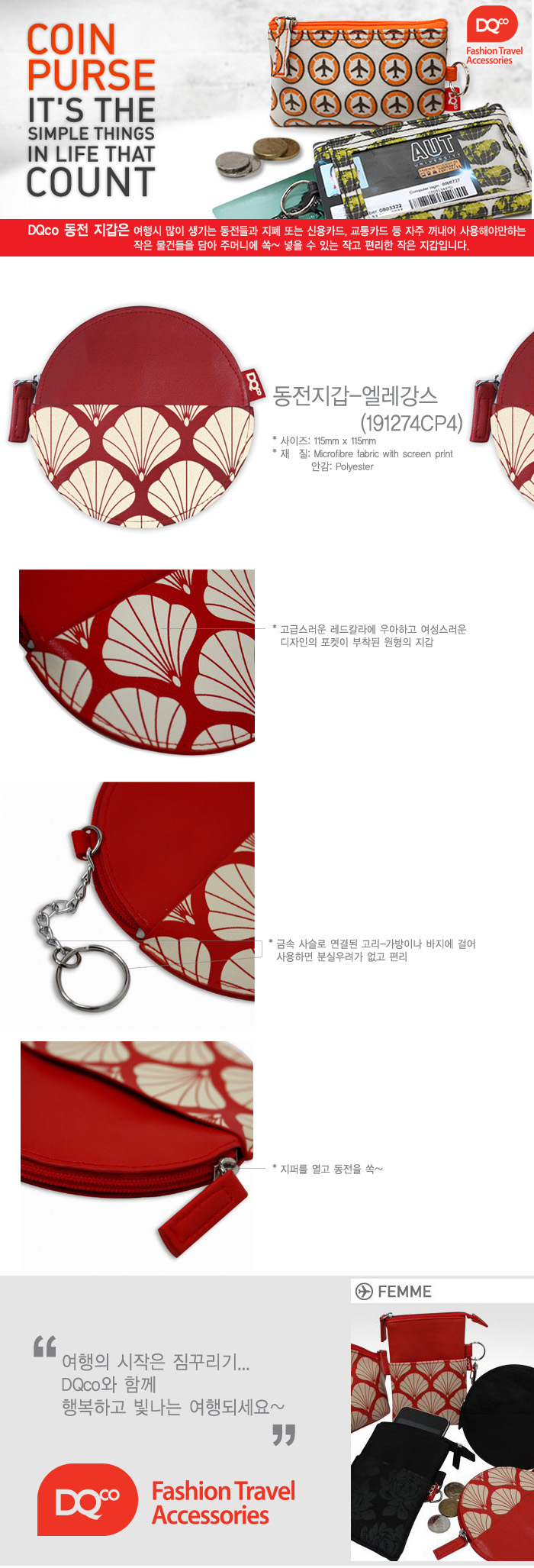 캠핑/여행 > DQco > 패턴-Femme > 동전지갑 - 엘레강스 (191274CP4)