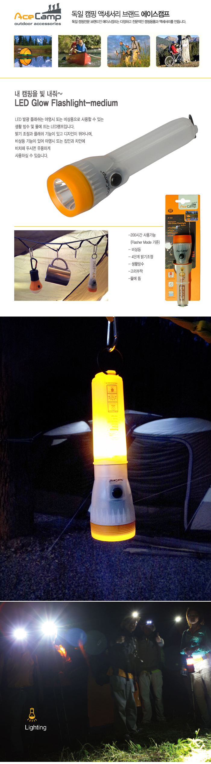 캠핑/여행 > 에이스캠프 > 랜턴/라이트 > 에이스캠프 발광 손전등 M (1021)